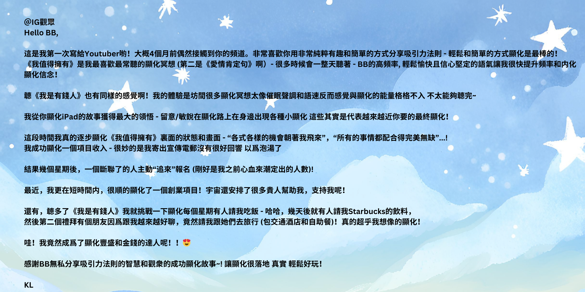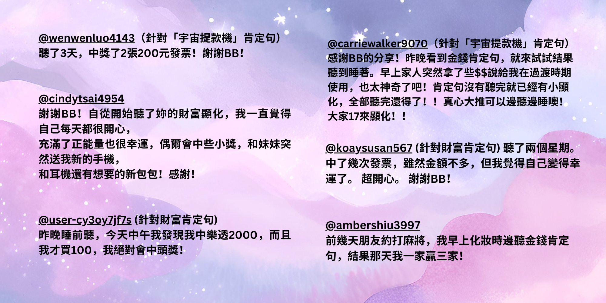 😽 有金錢肯定句,愛情肯定句,自信肯定句,感恩冥想等等!現在就可以用你最喜歡的播放軟體來聽囉!一起來看看觀眾聽了之後發生什麼有趣的事情吧!😽