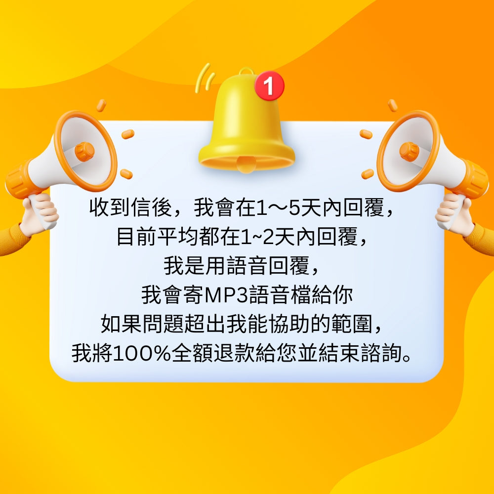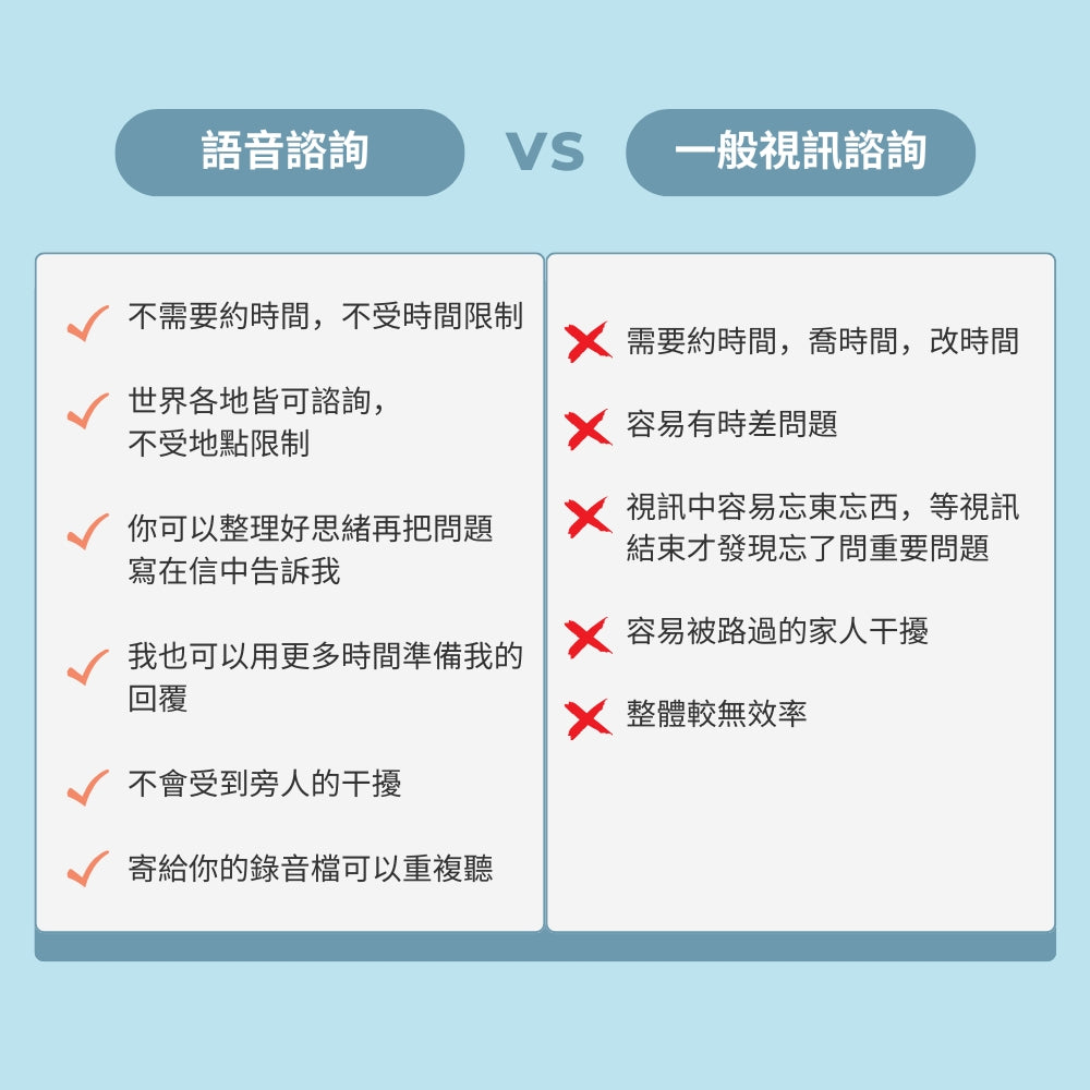 7️⃣ 這是Email語音諮詢,無需視訊,不用和我約時間,不論你在地球何處都可以使用這個服務